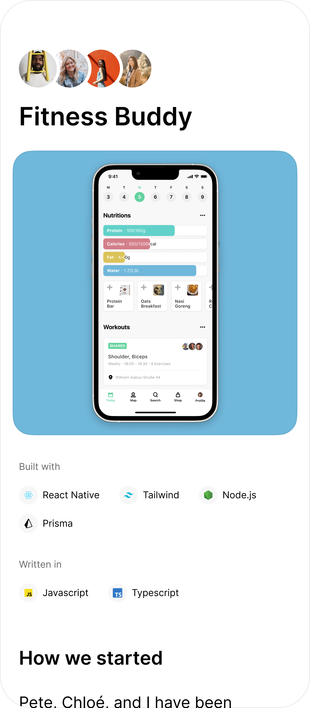 We're builders, creators and makers ourselves and searched for a way to proudly and easily share our work and progress but also enable others to learn from our challenges, milestones and successes. In a beautiful but transparent show don’t tell kinda way.